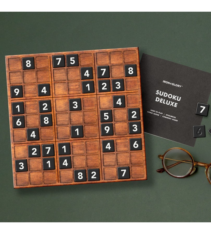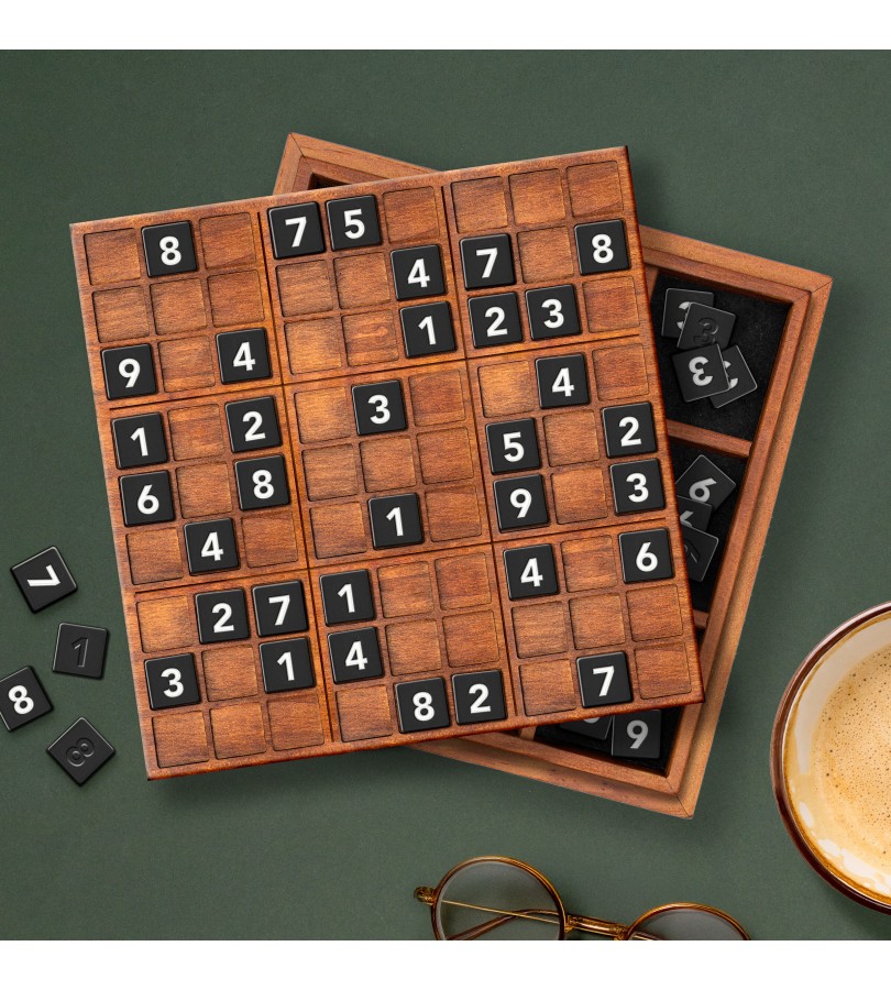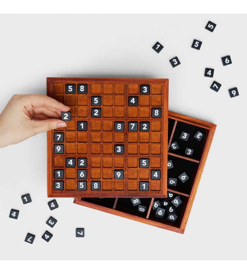 Este tabuleiro extra-grande e super deluxe inclui 81 peças numeradas. As peças são dupla face, com os números em relevo no verso, permitindo planear ou testar soluções antes de as colocar. A caixa inclui ainda instruções sobre como jogar, puzzles e soluções. Perfeito tanto para iniciantes absolutos como para jogadores experientes.